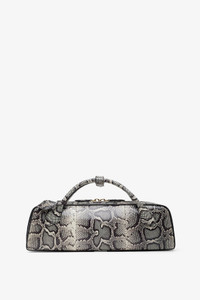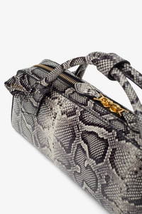 Black and white leather clutch bag from Alaia. The Le Teckel clutch bag is made in a black and white python-print Ayers leather with elongated shape, tubular short handles with decorative ties, a double zip closure and small removable mirror on the inside pocket. - Measurements: L31 x H10 x W7 cm - Made in Italy Product Code: AA1S06026I064009