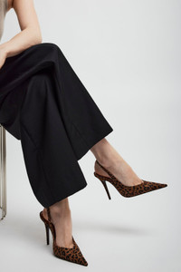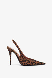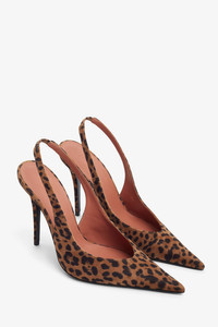 Leopard suede slingback pumps from Amina Muaddi. The Anok slingback pumps are made of suede, featuring a pointed toe and a stiletto heel measuring 105 mm. - Leather sole - True to size - Made in Italy Product Code: 15S365616ANO