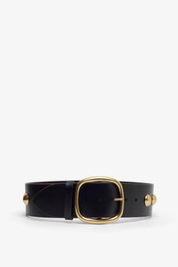 Black leather belt from Chloe. The Chloe Midnight leather belt is made in vintage-effect cowhide with gold-tone cabochon studs and a Chloe-engraved buckle. - Width: 5.5 cm - Made in Italy Product Code: CH26SBB05CZB