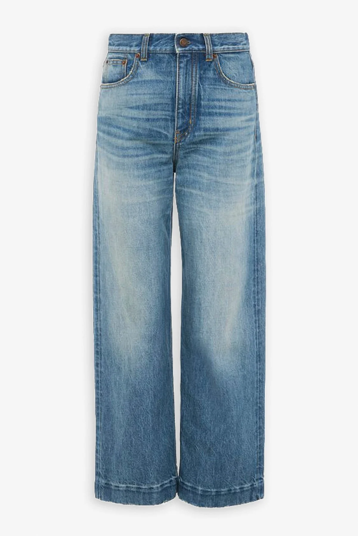 Blue washed denim jeans from Chloe. The Dream denim are made in indigo wash organic cotton denim, in a high-rise and wide-leg cropped fit. - Material: 100% Cotton - 100% Calfskin - Made in Italy Product Code: CH26SDP4325240R