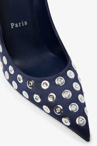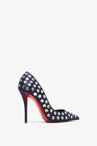 Blue satin pumps from Christian Louboutin. The Miss Z crystal pumps are made from Zaffiro navy crepe satin swathed with rhinestones set in metal circles. It has a pointed toe and is set on a 100mm slim stiletto heel with a padded insole. - Signature red leather sole - True to size - Made in Italy Christian Louboutin product care Product Code: 3250197-V200