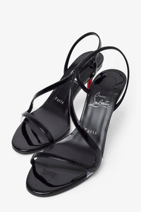 Black patent leather sandals from Christian Louboutin. The Rosa Z 80 sandals are made from patent leather, featuring a thin strap in front, an elastic slingback strap and show a hint of that iconic red sole behind the 80mm kitten heel. - Signature 'everlasting' red leather sole - True to size - Made in Italy Christian Louboutin product care Product Code: 3250181-B439