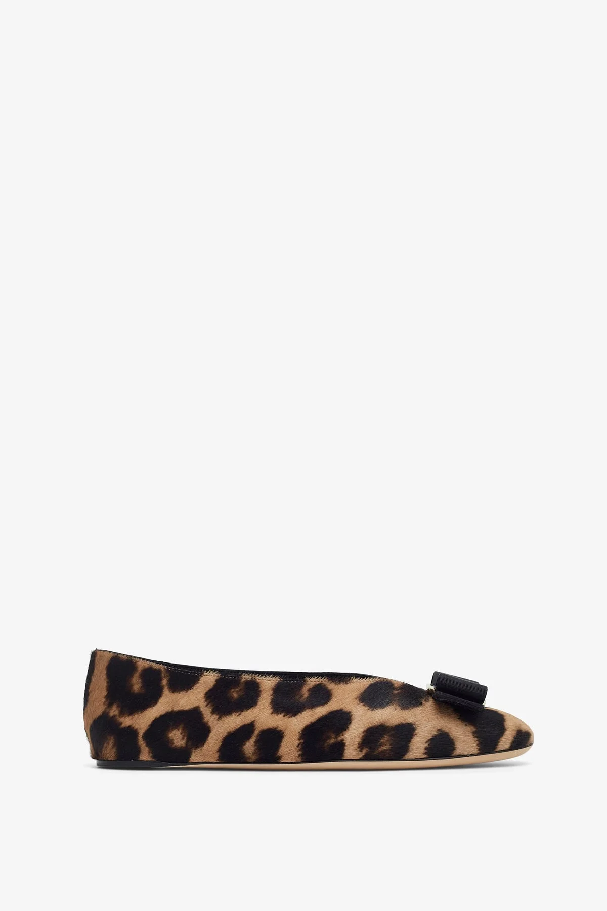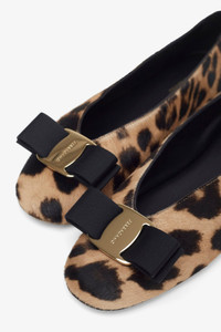 Leopard brown leather ballerinas from Ferragamo. The Vanna leopard ballerinas are made of haircalf leather, with a round-toe design, finished with a decorative bow and metallic accent. - Leather sole - True to size - Made in Italy Product Code: 781750