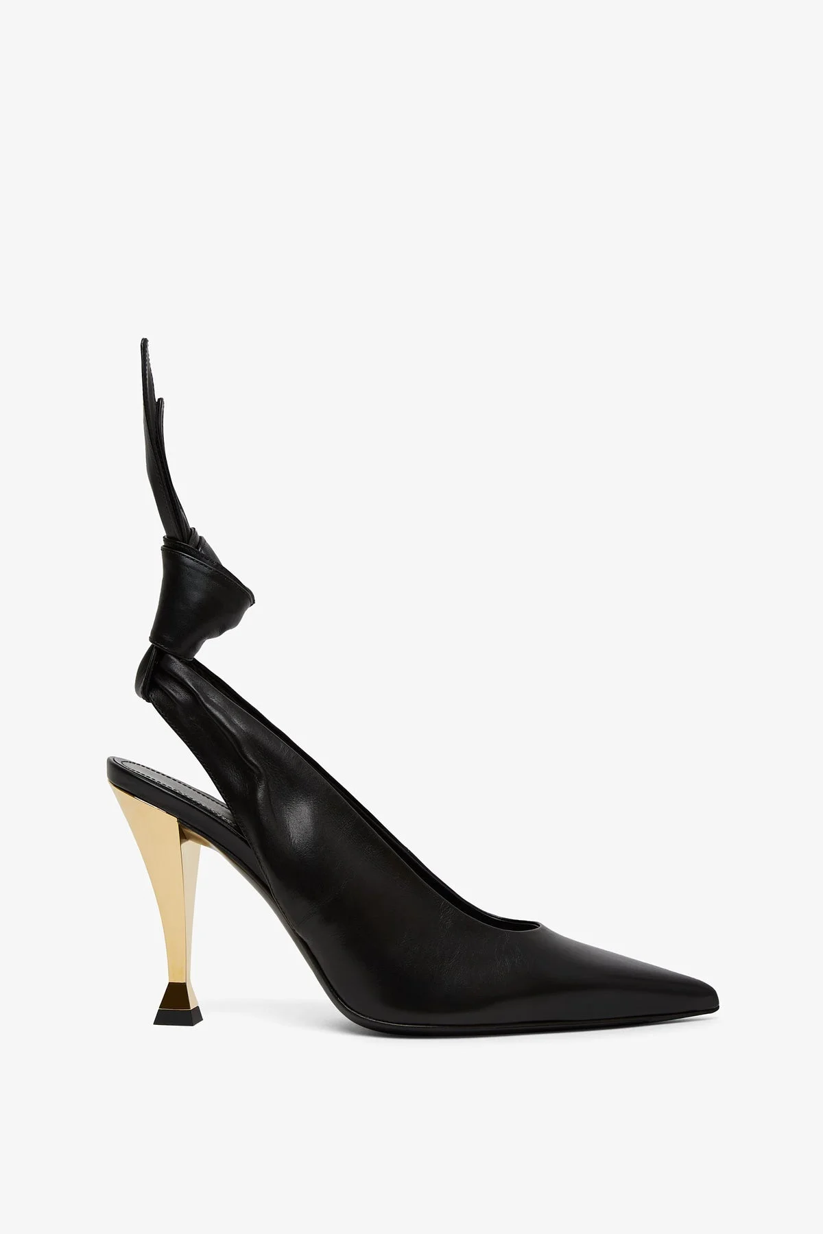 Slingback pumps from Givenchy. The Beauw slingback pumps are made in black nappa leather, feature a back strap with non-adjustable fixed bow, a Pointy toe and a gold-finish hourglass heel measuring 95mm. - Leather sole - True to size - Made in Italy Product Code: BE403QE29Y005