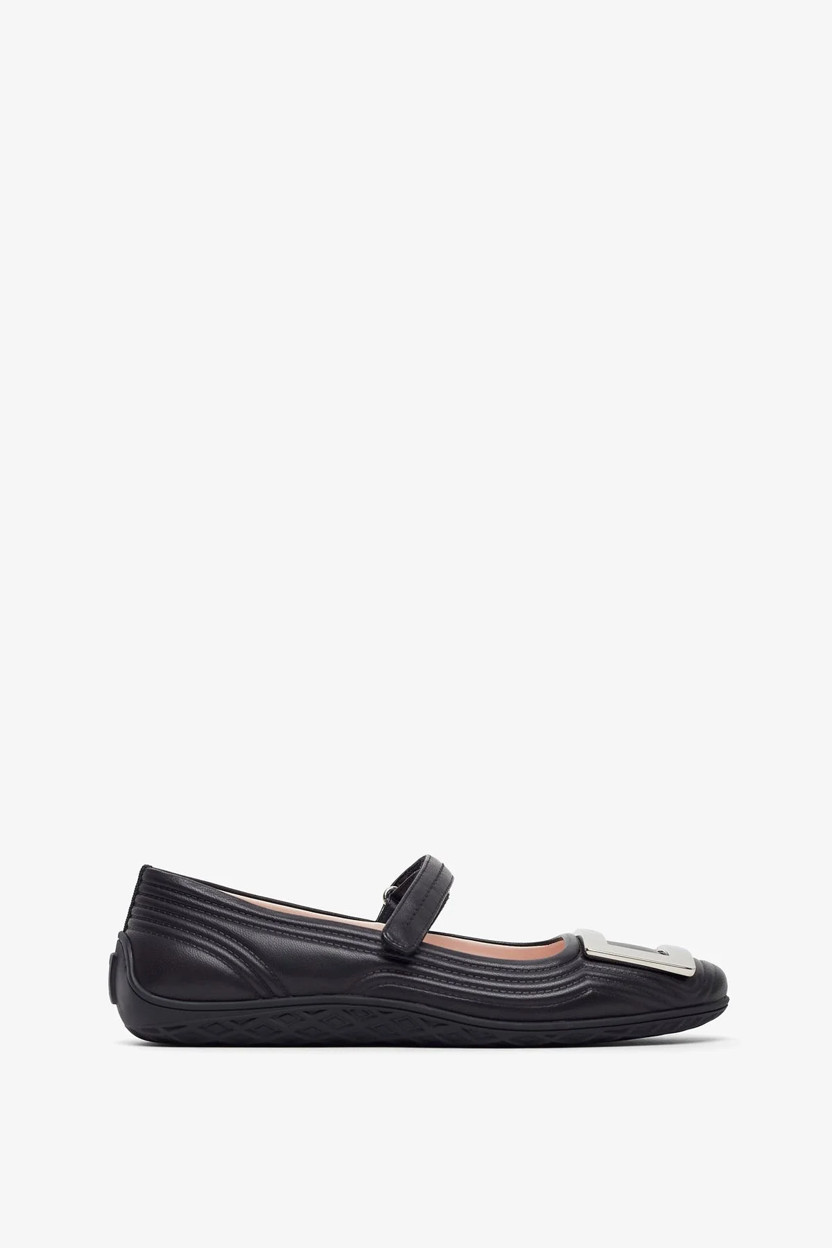 Black leather ballerinas from Roger Vivier. The Padded ballerinas are made of quilted nappa leather, embellished with a lacquered buckle. It has a strap with velcro, set on a flat rubber outer sole. - Rubber sole - True to size - Made in Italy Product Code: RVW7724336091TB999