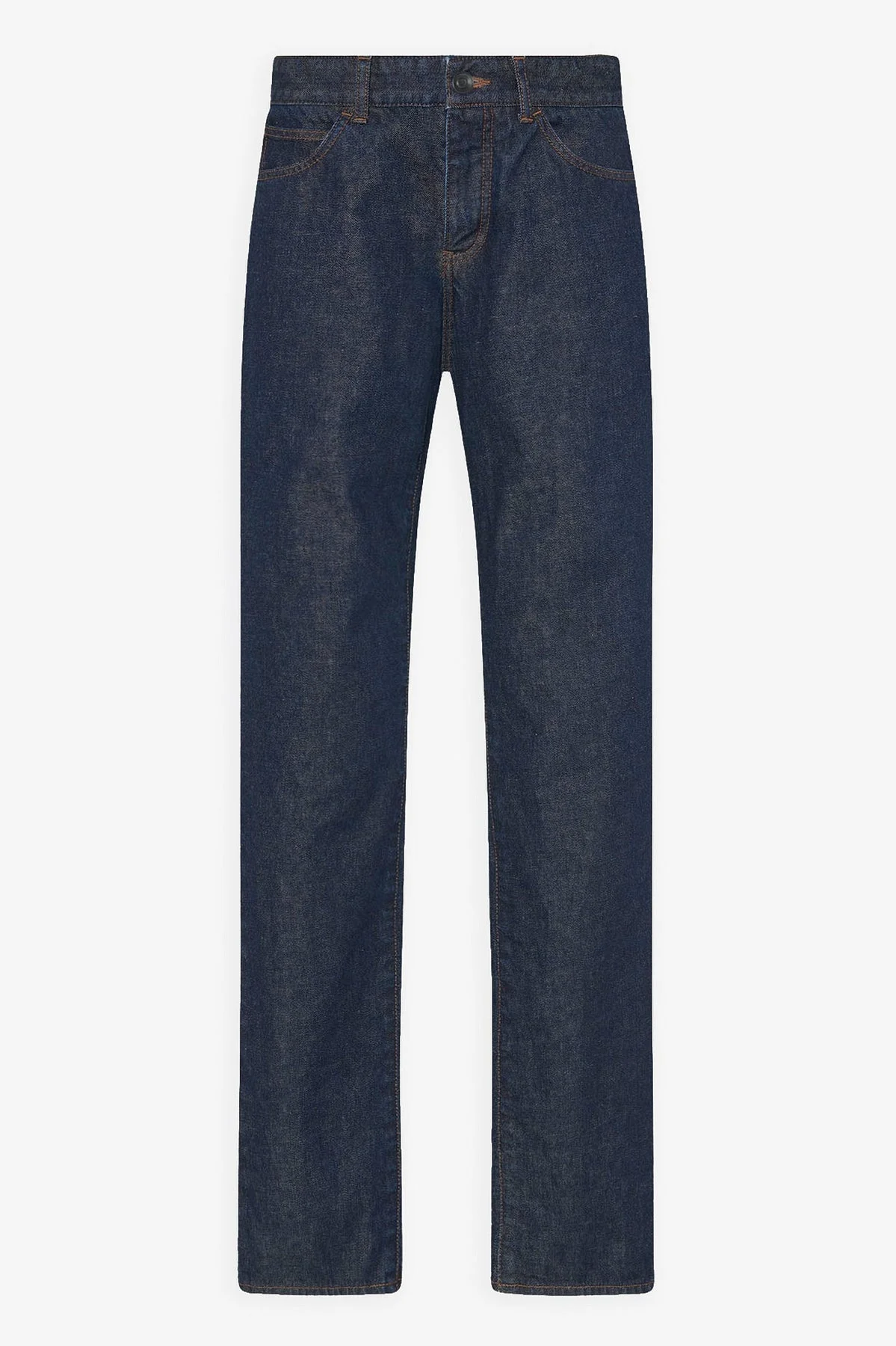 Dark blue jeans from The Row. The Carlyl straight leg jeans are made in Japanese Supima cotton denim with contrast topstitching and classic 5-pocket construction. - Material: 100% Cotton - Made in Japan Product Code: 5582-Y184-BLK
