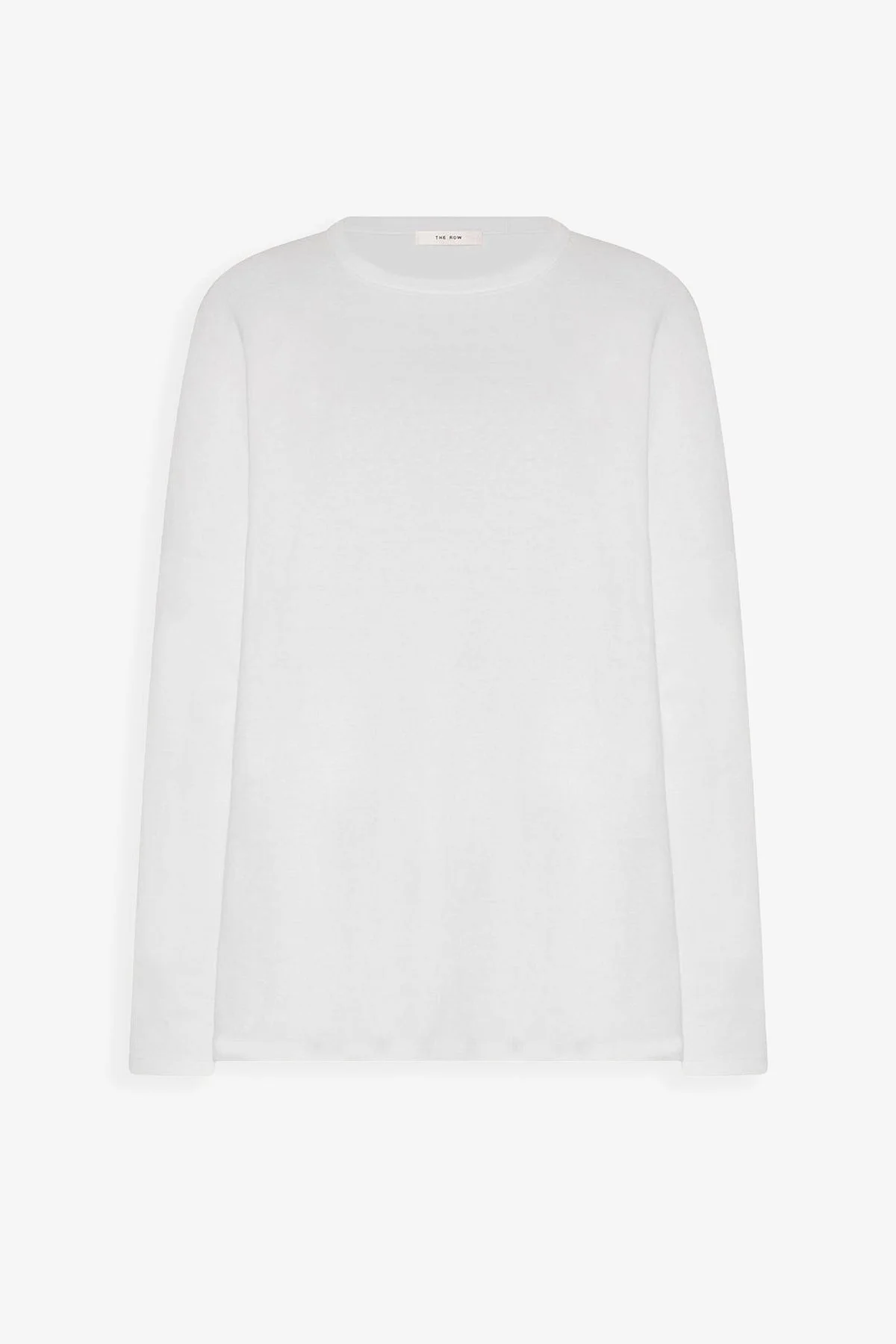 White cotton long-sleeved t-shirt from The Row. The Floris long-sleeved crewneck t-shirt is made in ultrasoft Japanese cotton jersey with relaxed fit dropped shoulders, and ribbed neckline. - Material: 100% Cotton - Made in Italy Product Code: 10806-K732-WHT