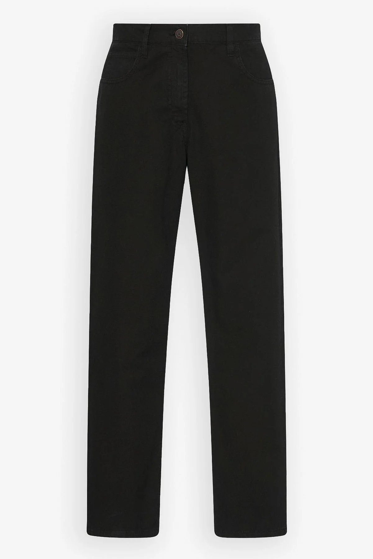 Black cotton jeans from The Row. The Landais relaxed straight leg jean in washed Japanese cotton canvas with tonal topstitching and classic 5-pocket construction. - Material: 100% Cotton - Made in Italy Product Code: 10000-W3912-BLK