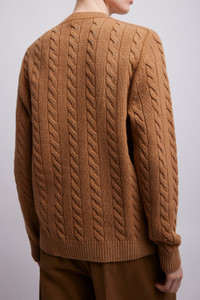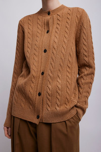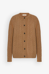 Brown cable-knit cardigan from The Row. The Loneke cardigan is made in textured wool with relaxed fit, front button closure, and ribbed neckline cuffs, and hem. - Material: 100% Wool - Made in Italy Product Code: 10092-Y961-FWN
