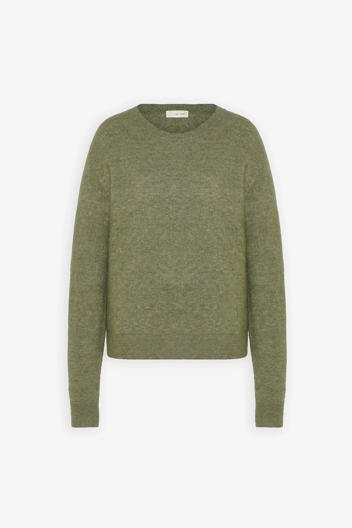 Green cashmere sweater from The Row. The Lorynna crewneck sweater is made in textured cashmere and silk with regular fit and ribbed neckline, cuffs, and hem. - Material: 65% Cashmere, 35% Silk - Made in Italy Product Code: 10058-Y363-SAG