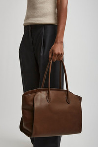 Brown leather tote bag from The Row. The Marlo tote bag is made of polished saddle leather with tubular handles and gusseted side panels. Any irregularities in the leather are not to be considered manufacturing defects but rather a characteristic of the material. - Measurements: L42 x H26 x W14 cm - Made in Italy Product Code: W1800-L72-DEOS