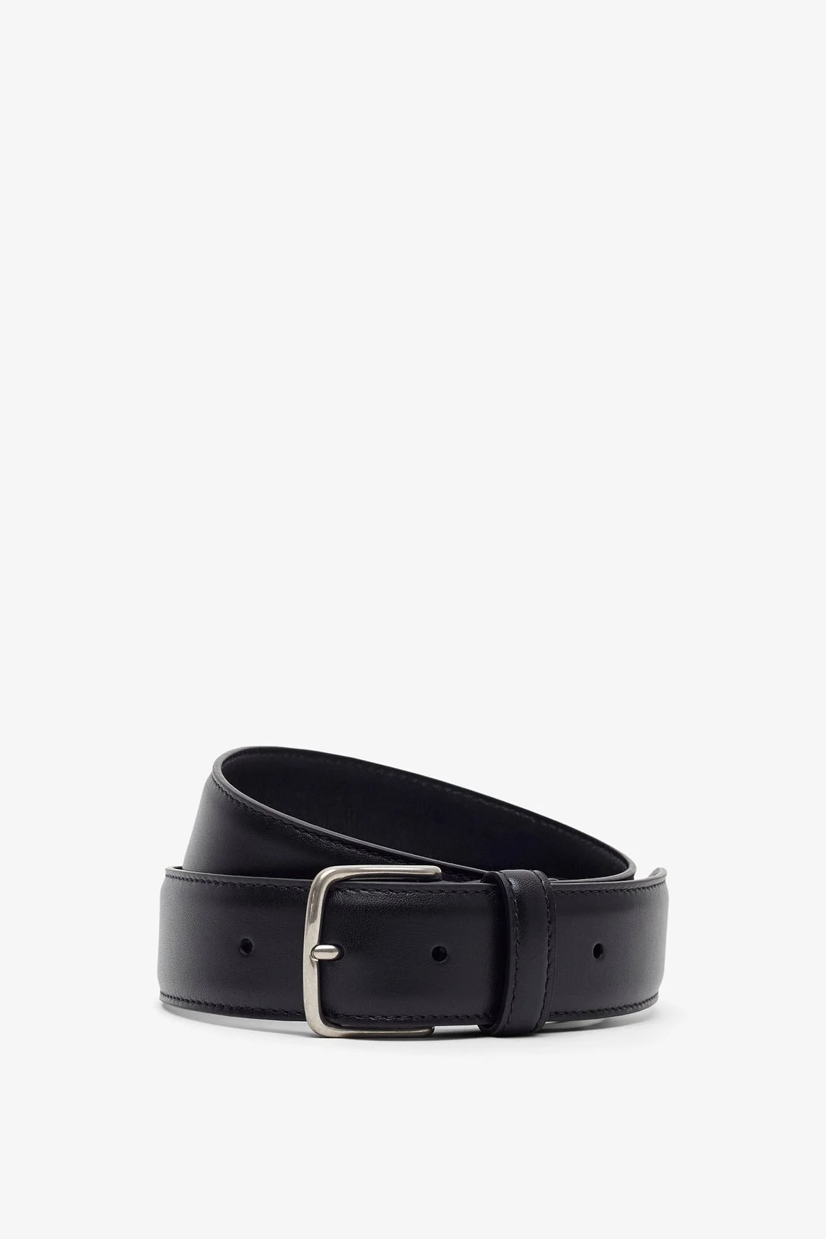 Black leather belt from The Row. The Classic belt is made of sleek calfskin leather with silver metal buckle and fixed loop. - Width: 35mm - Made in Italy Product Code: W1846-L60-BAS