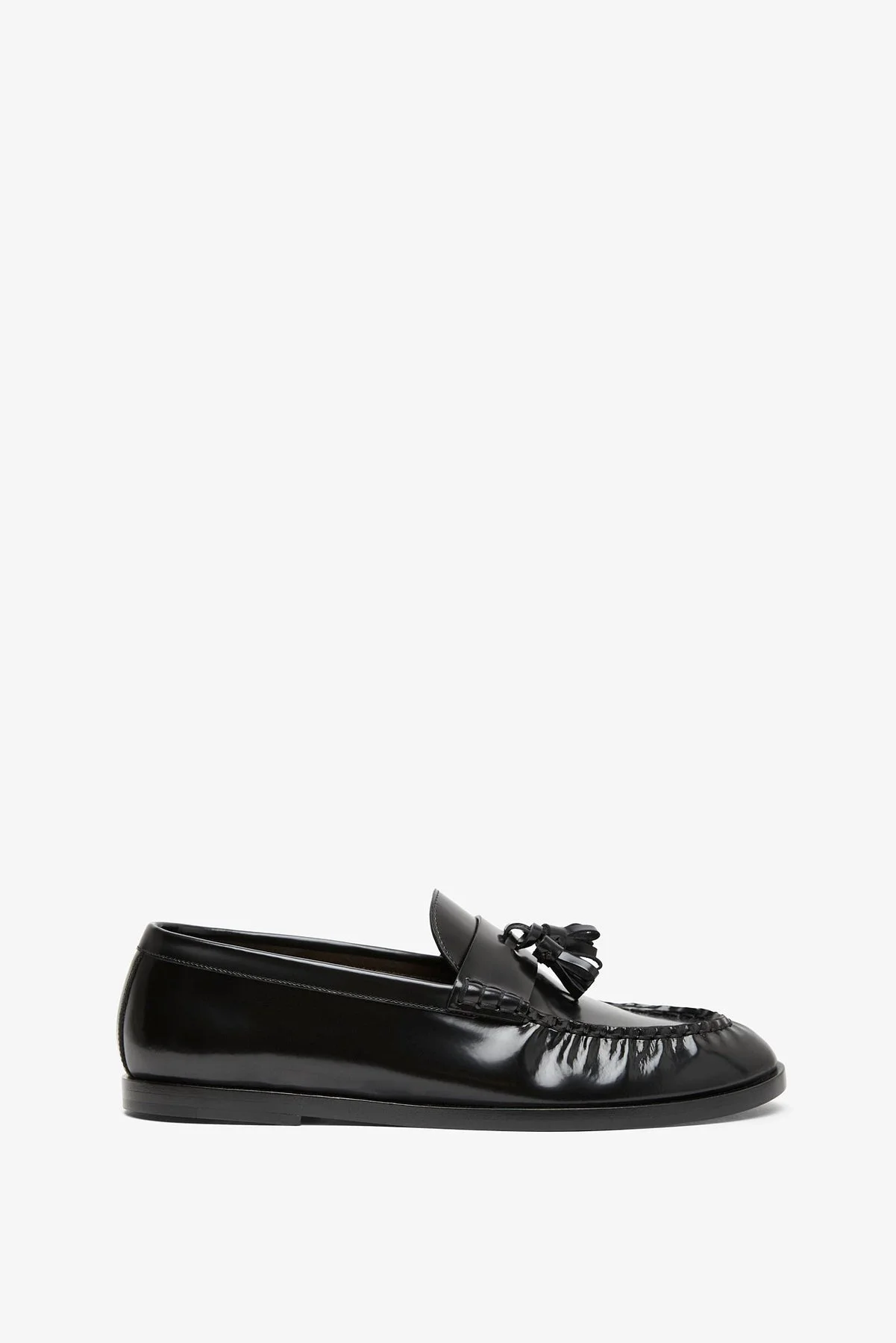 Black leather loafers from The Row. The Polished loafers are made in polished calfskin leather with natural pleating effect and tassel detailing. - Leather sole - True to size - Made in Italy Product Code: F1242-L60-BLK