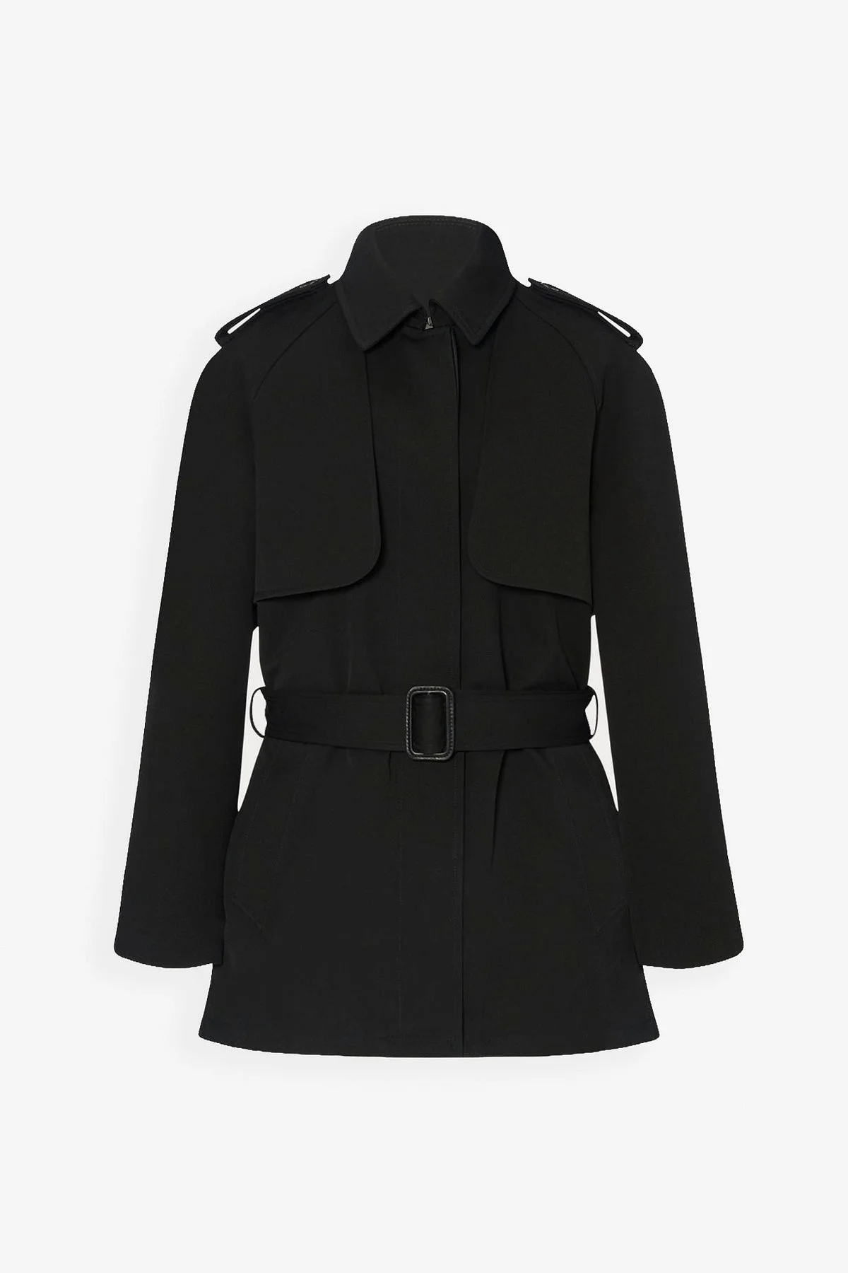 Black wool jacket from The Row. The Usuaia single-breasted trench coat in double-faced wool and cashmere gabardine with detachable sleeves, slant welt pockets, and concealed button closure with removable buckle belt. - Material: 100% Virgin Wool - Made in Italy Product Code: 10601-W4255-BLK
