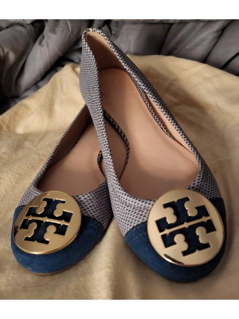 Tory Burch Blue/Grey Leather and Suede Reva Ballet Flats Shoes size 5.5
