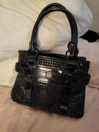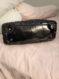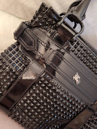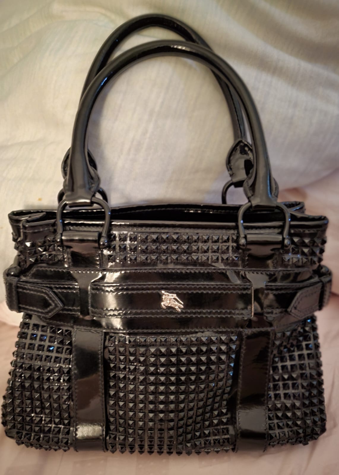Rare!! Burberry Prorsum Rachel Black Patent Leather with Rockstuds Discover the Burberry Prorsum Rachel Black Patent Leather with Rockstuds Shoulder/Hand Bag, a truly rare and exceptional piece. This stunning bag features a sleek black patent leather exterior, beautifully embellished with eye-catching rockstuds. The adjustable shoulder strap allows for both crossbody or handheld use, offering functionality alongside its timeless elegance. Although the dustbag is not included, this unique bag comes with an authenticity card, booklet, and original receipt, ensuring its genuine Burberry heritage. Don't miss the opportunity to own this rare collector's item, perfect for the most discerning fashion aficionado.