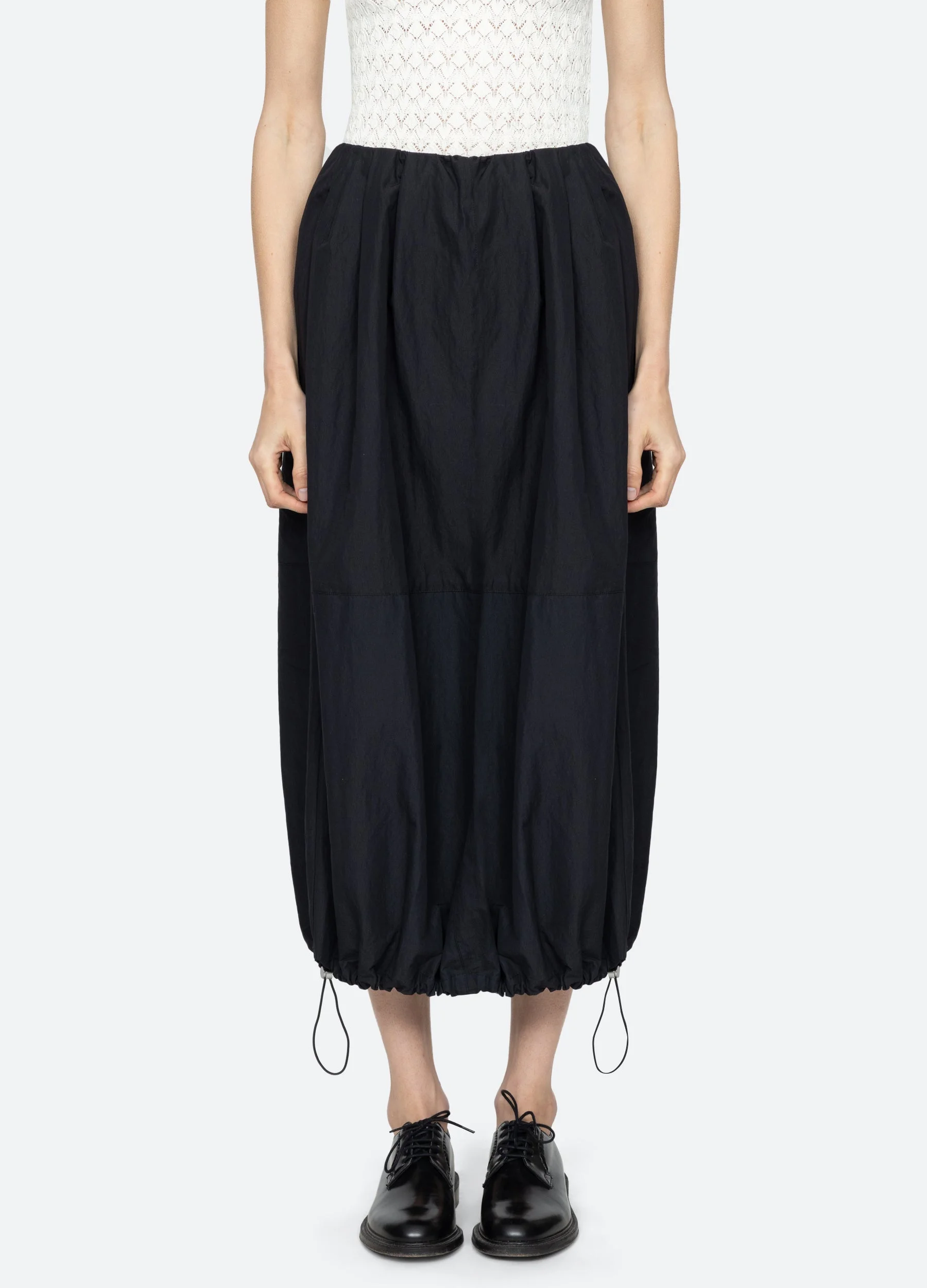 The Abilene bubble skirt is shaped in a chic midi silhouette with an elasticized waistband for an easy, flattering fit. Adjustable drawstrings at the hem add a touch of softness and allow for personalized styling. DETAILS - 71% cotton, 29% nylon - invisible back zipper - designed for a relaxed fit - style #RS26-073 - model is 5'10'' and wearing a size 4