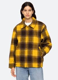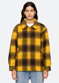 Exclusively Ours. The Amber jacket is part of our “Harmony” program that aims to simultaneously produce garments that are in-line with our values of recycling, reusing, connecting cultures and artisans, and manufacturing in a sustainable manner. We want this program to be a harmony of these goals. The Amber plaid wool jacket features full sleeves and front zipper closure. Designed for an oversized, relaxed fit. DETAILS - self-100% wool - lining-100% polyester - padding-100% polyester - zipper front - style #HC24-404WEB - model is 5'10'' and wearing a size S