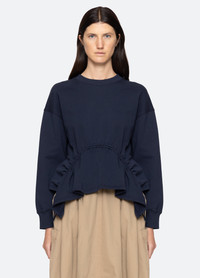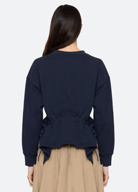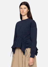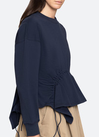 The Athena long sleeve sweatshirt features an asymmetrical hem with adjustable drawstring cords, blending structure with everyday ease. DETAILS - 100% cotton - slip on - designed for a relaxed fit - style #AW25-014 - model is 5'10'' and wearing a size S