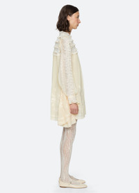 The Ayda embroidered dress is adorned with intricate floral embroidery throughout, accented by contrasting lace along the bodice and sleeves. Flared cape sleeves and a mini silhouette complete the design, creating a romantic and effortlessly feminine statement piece. DETAILS - self-100% viscose - combo-100% nylon - lining-100% cotton - embroidery-100% polyester - lace-100% polyester - button back closure - designed for a relaxed fit - style #RS26-085 - model is 5'10'' and wearing a size S