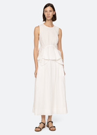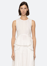 The Camden tank top features an asymmetrical hem with adjustable drawstring cords and pintuck detailing throughout. Pairs perfectly with the Camden skirt. DETAILS - 100% cotton - invisible back zipper - designed for a relaxed fit - style #PF25-002 - model is 5'10'' and wearing a size 4