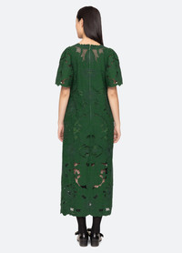 The Ceci embroidered dress combines delicate floral embroidery with intricate cut-out detailing, all within a flattering midi silhouette. This timeless piece exudes modern elegance and is perfect for any occasion. DETAILS - self-85% cotton, 15% linen - lining-100% cotton - embroidery-100% polyester - invisible back zipper - designed for a relaxed fit - style #AW25-022 - model is 5'10'' and wearing a size S