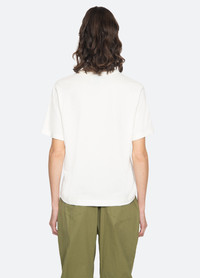 The Claira t-shirt features short sleeves and Sea's signature Harmony logo, offering a clean, vintage-inspired feel. Its relaxed silhouette makes it an effortless staple for everyday dressing. DETAILS - self-95% cotton, 5% spandex - rib-95% cotton, 5% spandex - slip on - designed for a relaxed fit - style #SS26-120 - model is 5'10'' and wearing a size S