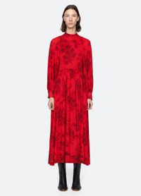 The Cornelia long sleeve floral print dress is defined by its high neckline, flowing sleeves, and a voluminous full skirt. Falling to a graceful midi length, it captures a sense of romance and ease in equal measure. DETAILS - self-97% viscose, 3% elastane - lining-93% polyester, 7% elastane - invisible back zipper - designed for a slimmer fit - style #RS26-044 - model is 5'10'' and wearing a size S