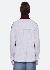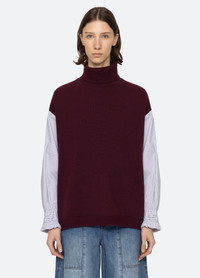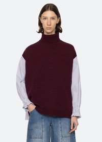 An online and in store exclusive. The Devana turtle neck combo sweater features a knit body, voluminous cotton balloon sleeves and adjustable drawcords at the back to create a more cinched silhouette. Designed for an easy, relaxed fit. DETAILS - self-100% extrafine merino wool - combo-70% cotton, 27% nylon, 3% spandex - slip on - designed for a relaxed fit - style #AW25-409WEB - model is 5'10'' and wearing a size S