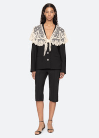 The Elisa capri pants are tailored from lightweight tropical wool in a cropped silhouette. Sharp pin-tuck detailing down the center of each leg adds a polished, elongating effect. DETAILS - 44% wool, 51% polyester, 5% spandex - zipper and front hook closure - designed for a slimmer fit - style #RS26-092 - model is 5'10'' and wearing a size 4
