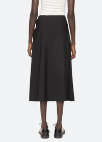 The Elisa skirt is crafted from lightweight tropical wool in a midi silhouette. Large front pleats and adjustable waist tabs lend a structured yet versatile finish, creating movement and modern elegance. DETAILS - 44% wool, 51% polyester, 5% spandex - side buckles - designed for a slimmer fit - style #RS26-094 - model is 5'10'' and wearing a size 4