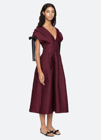 The Fayetta animal print jacquard dress features a timeless midi silhouette, with structured pleating on the sleeves and bodice for added dimension. The delicate bow detail on the sleeves give this modern piece a soft, feminine touch, perfect for creating an effortlessly elegant look. DETAILS - self-100% polyester - lining-100% cotton - invisible back zipper - designed for a slimmer fit - style #AW25-035 - model is 5'10'' and wearing a size 4