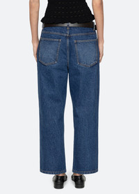 The Jules denim jean features a relaxed, mid-rise silhouette with a removable belt. With a straight-leg fit, subtle distressing, and a softly faded wash, it's a versatile, vintage-inspired staple made for effortless styling. DETAILS - 100% cotton - button & zipper closure - designed for a relaxed fit - style #AW25-051 - model is 5'10'' and wearing a size 4