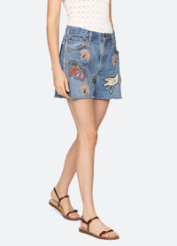 The Kara beaded denim shorts feature a chic fusion of classic denim and artisanal embellishment. These beaded denim shorts feature a frayed hemline and high waisted silhouette. DETAILS - 100% cotton - button & zipper closure - designed for a relaxed fit - style #PF25-062 - model is 5'10'' and wearing a size 4