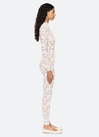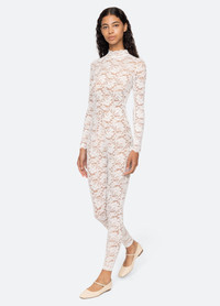 An online and in store exclusive. The Lilian lace catsuit is crafted from sheer, stretch floral lace that contours and defines the silhouette. Designed with a high neckline and long sleeves, this piece is perfect for layering or making a bold, statement look. DETAILS - 90% polyamide, 10% spandex - invisible back zipper - designed for a slimmer fit - style #AW25-408WEB - model is 5'10'' and wearing a size S