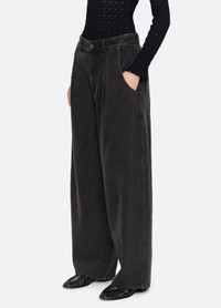 The Lyssa denim jeans feature tailored pleats and a straight, wide-leg silhouette. They are designed for a relaxed fit that combines modern structure with effortless ease. DETAILS - blue color: - self-100% cotton - black color: - self-100% cotton - pocket bag-100% polyester - button & zipper closure - designed for a relaxed fit, slim waist - style #RS26-087 - model is 5'10'' and wearing a size 4