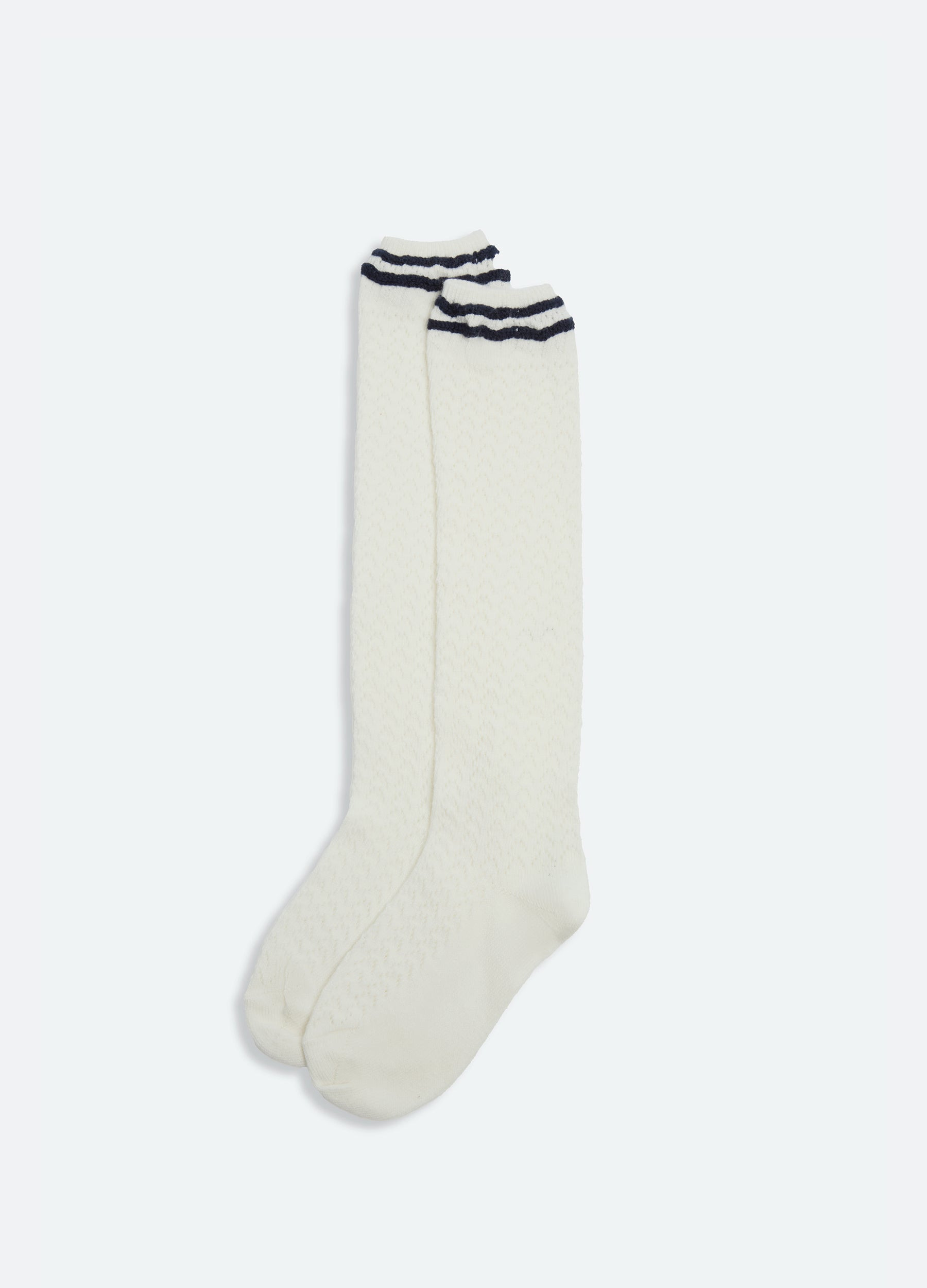 The Marie knit socks feature a pointelle knit and crochet stripe detailing. DETAILS - 100% cotton - one size - style #PF25-103