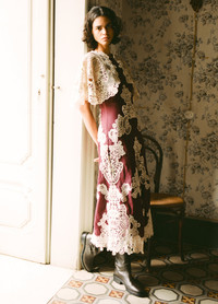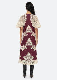 The Medina lace dress is crafted with intricate lace applique, delicately detailed to enhance its refined charm. The cape-style sleeves and flattering midi silhouette make it an elegant choice for any occasion. DETAILS - self-100% ramie - lining-100% cotton - embroidery-100% polyester - invisible back zipper - designed for a slimmer fit - style #AW25-101 - model is 5'10'' and wearing a size 4