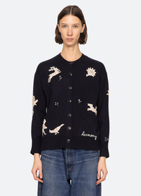 The Mika applique cardigan blends whimsy with warmth in a timeless silhouette. This classic piece is adorned with folkloric lace motifs and finished with detailed embroidery, bringing storytelling charm to everyday layering. DETAILS - self-100% extrafine merino wool - decoration-100% polyester - button front - designed for a relaxed fit - style #AW25-102 - model is 5'10'' and wearing a size S