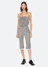 The Minette top features a full flower crafted from soft ribbed-knit, complemented by ribbed-knit trim along the hem. With a slightly cropped silhouette, it offers a striking, textured take on a classic camisole. DETAILS - self-100% wool - decoration-100% wool - slip on - designed for a slimmer fit - style #SS26-093 - model is 5'10'' and wearing a size S