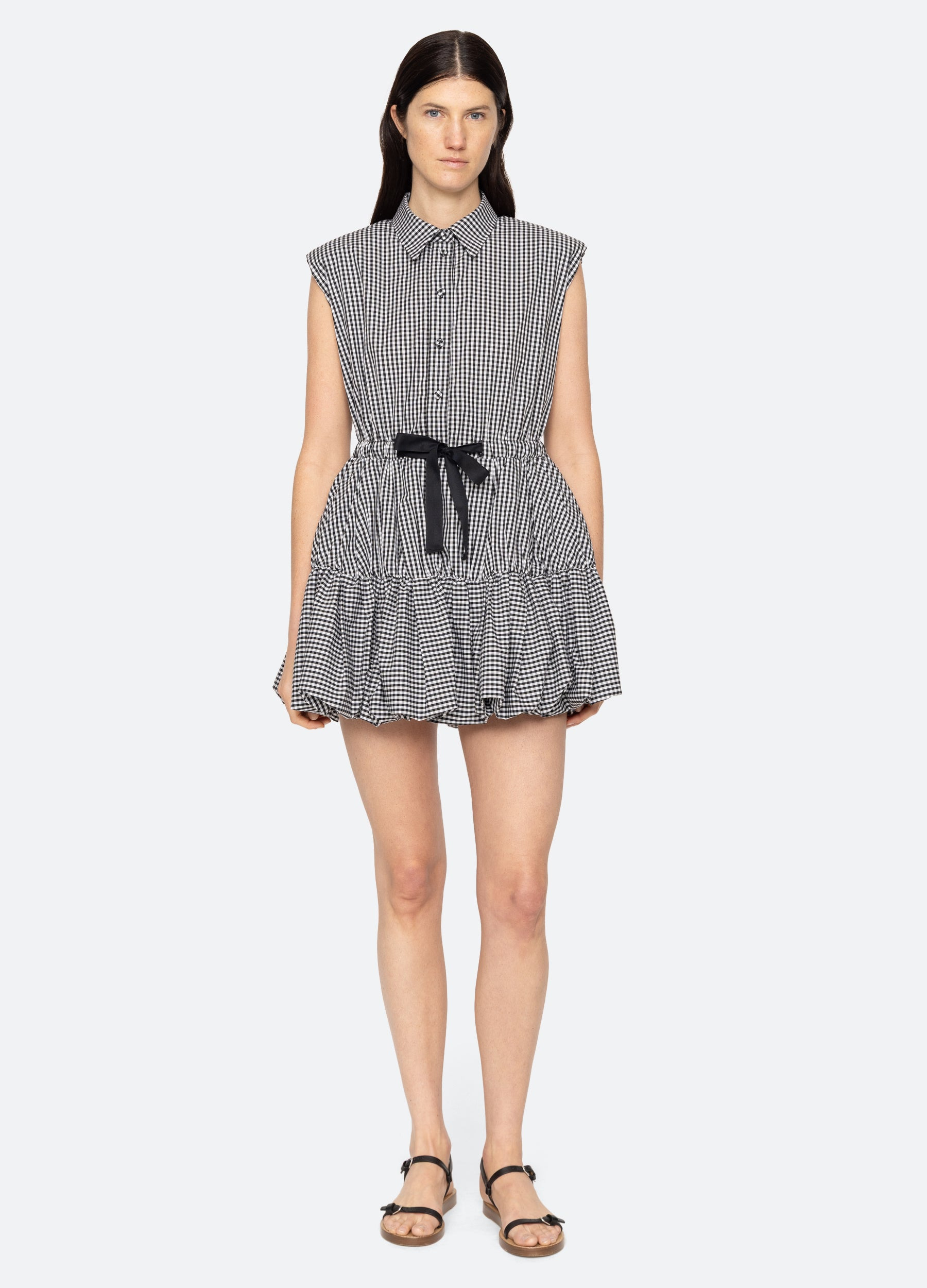 The Neci gingham mini dress features shoulder pads, adjustable waistband and voluminous bubble hem. DETAILS - 100% cotton - button front - designed for a relaxed fit - style #PF25-022 - model is 5'10'' and wearing a size S