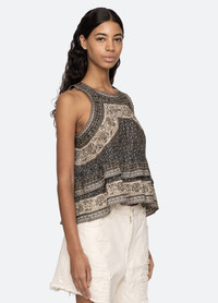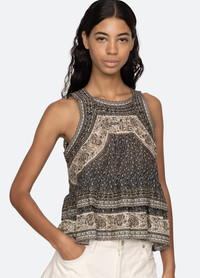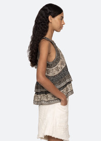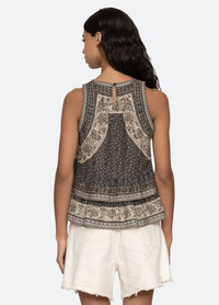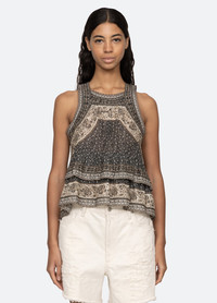 The Palma floral border print tank top features a tiered ruffle hem. Designed for an easy, relaxed fit. DETAILS - self-100% cotton - embroidery-100% polyester - button back fastening - designed for a relaxed fit - style #PF25-104 - model is 5'10'' and wearing a size S
