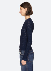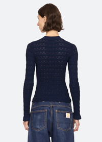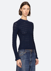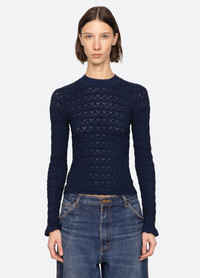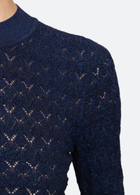The Ruby fine gauge knit long sleeve top is woven with shimmering lurex threads and features delicate ruffle-trimmed cuffs. Designed for a slim fit, it's an effortlessly polished layering piece. DETAILS - 83% viscose, 17% elite - slip on - designed for a slimmer fit - style #AW25-118 - model is 5'10'' and wearing a size S