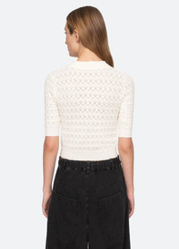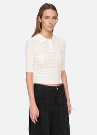 The Rue fine gauge knit polo features short sleeves and is crafted for a slim fit. DETAILS - running small, recommended to size up one size - 83% viscose, 17% elite - button front - style #RS24-151 - model is 5'10'' and wearing a size S