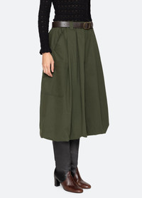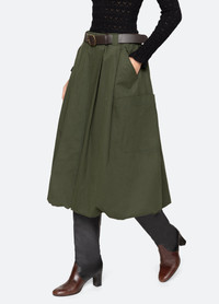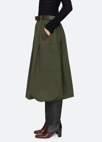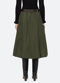 The Sullivan bubble skirt features a voluminous bubble hem and a refined midi silhouette, creating a classic yet polished statement. Finished with a removable belt, it offers styling versatility and an effortlessly elevated look. DETAILS - self-100% cotton - lining-100% cotton - slip on - designed for a relaxed fit - style #AW25-066 - model is 5'10'' and wearing a size S