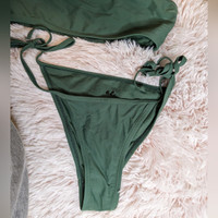 AC Adventure Club Size Women's Small 2 Piece Bikini Set Tube top with adjustable straps String bikini cheeky bottoms Color: Green Nylon/Spandex with Polyester Lining Excellent condition!