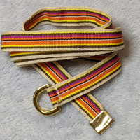 Vintage belt - cotton ribbon double stacked, gold hardware Approximately 40" Long 3/4" Wide Colorful stripe pattern