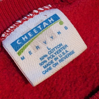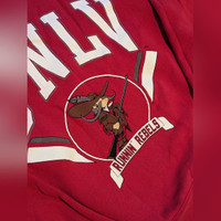Vintage Cheetah Mervyns - Made in USA Size Large Men's Red, Cotton/Poly, Graphic Sweatshirt UNLV - RUNNIN' REBELS University Nevada Las Vegas Basketball Conditional notes: some small black blemishes in random places; Small hole near shoulder; Minor cracking in screen print. Overall in Great Condition! Best one I've seen around! : ) Flat laid Measurements: Chest pit to pit: 24", Shoulders 22", Length at neckline 29.5" Sleeve pit to wrist 23" Open to offers! Hole can be amature patched on underside, per buyer's request!