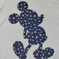 Disney Parks, size Women's XS. White raglan with rust red sleeves, white Star-studded, blue Mickey Mouse at center. Few faint spots, as pictured. #disney #disneyparks #raglan #stars #mickey #patriotic #4thofjuly #vacation #summer #spring