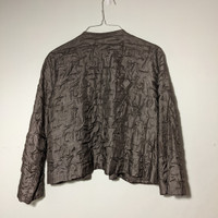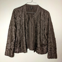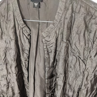 Eileen Fisher Women's Medium 10/12 (designer size chart in pictures) 100% Silk Taupe/Silver Crinkled Open-front Dress Jacket like new!!